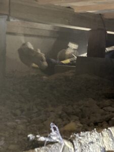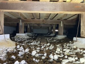 職人さんが床下で施工している様子です